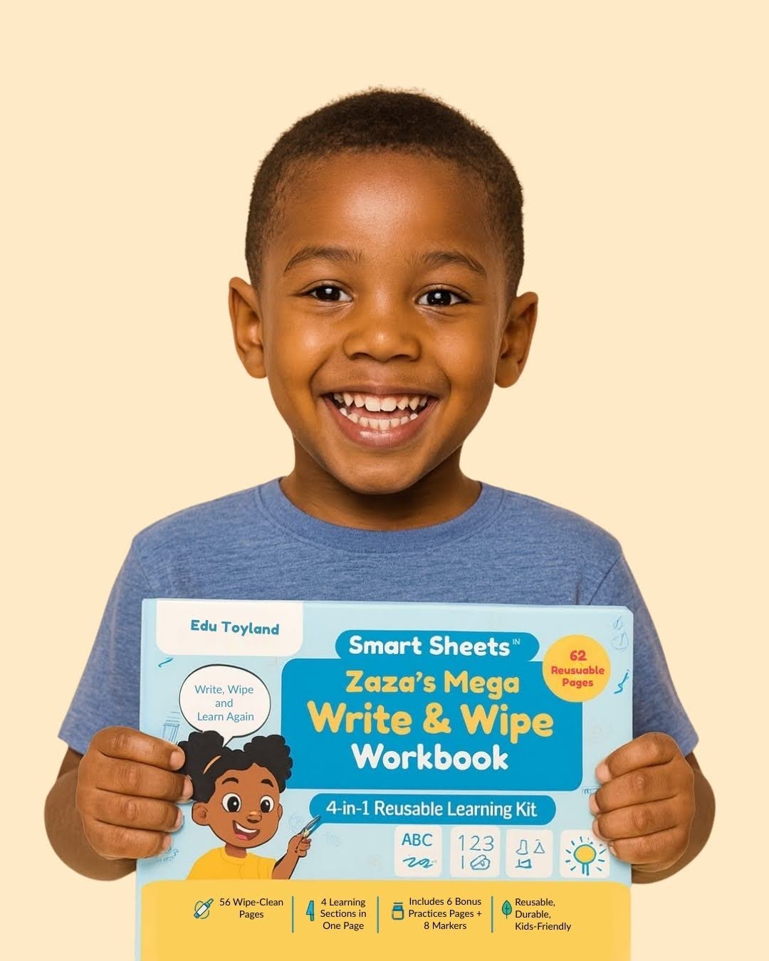 With 62 wipe-clean pages and bonus practice sheets, kids can keep learning without limits. Every page is reusable, durable, and child-friendly, making it the perfect resource for both independent learning and parent-guided practice.
