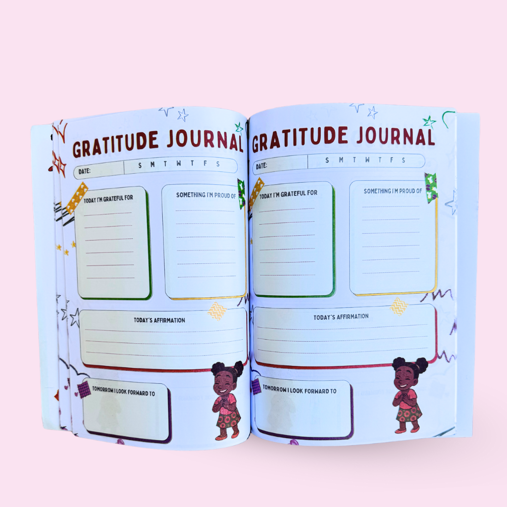 Turn everyday moments into lessons of thankfulness with My Little Gratitude Journal with Zaza. Designed especially for children, this cheerful, Afrocentric journal helps little ones reflect, write, and draw about the things they’re grateful for.